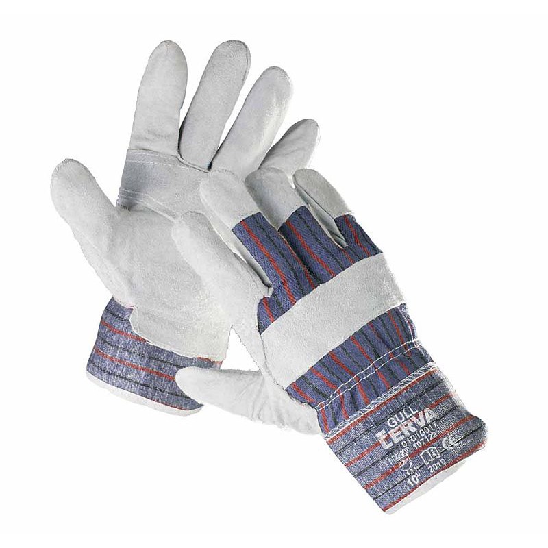 Rukavice z hovädzej štiepenky v dlani s podšívkou, chrbát a manžeta z bavlnenej tkaniny.